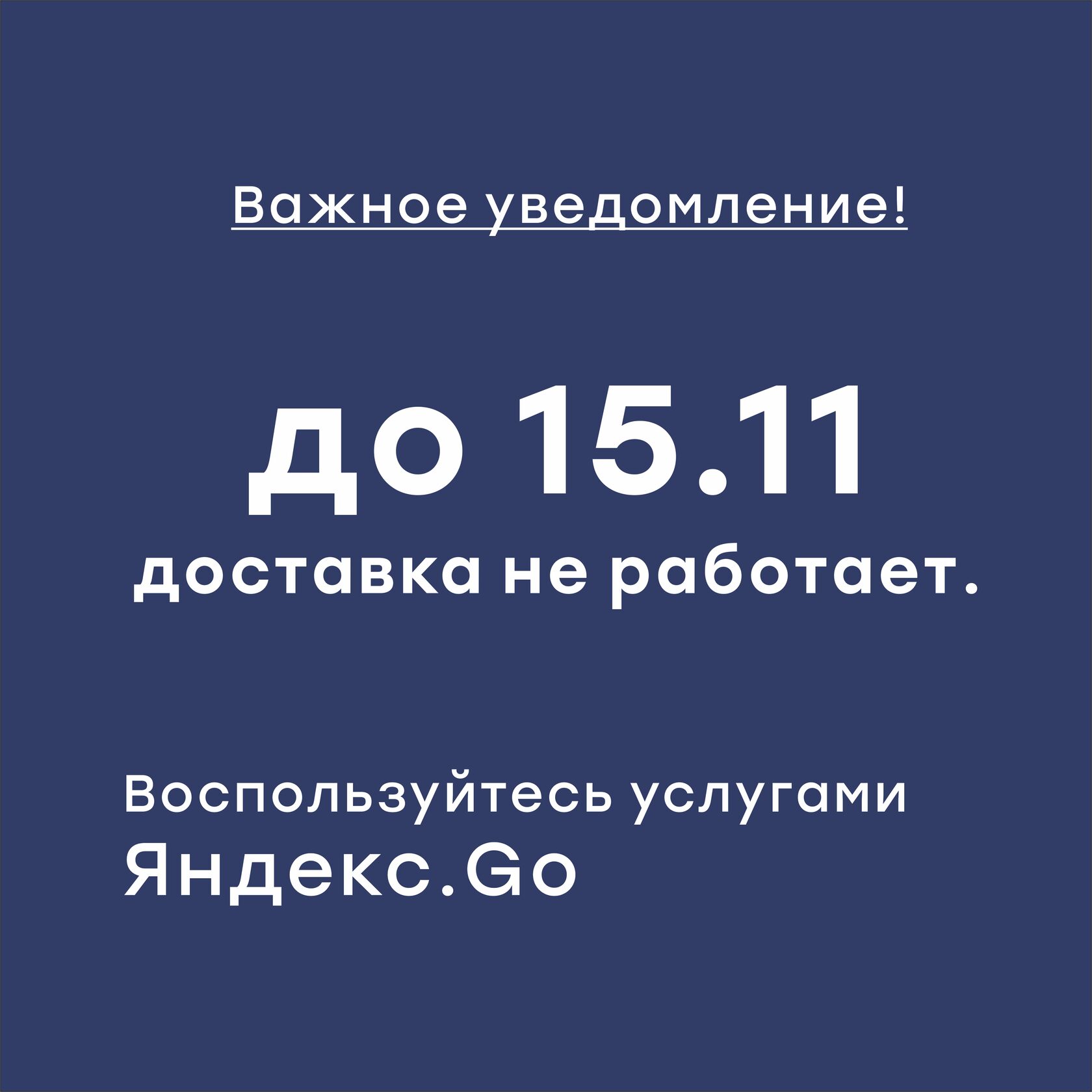 До 15 ноября служба доставки временно не работает.